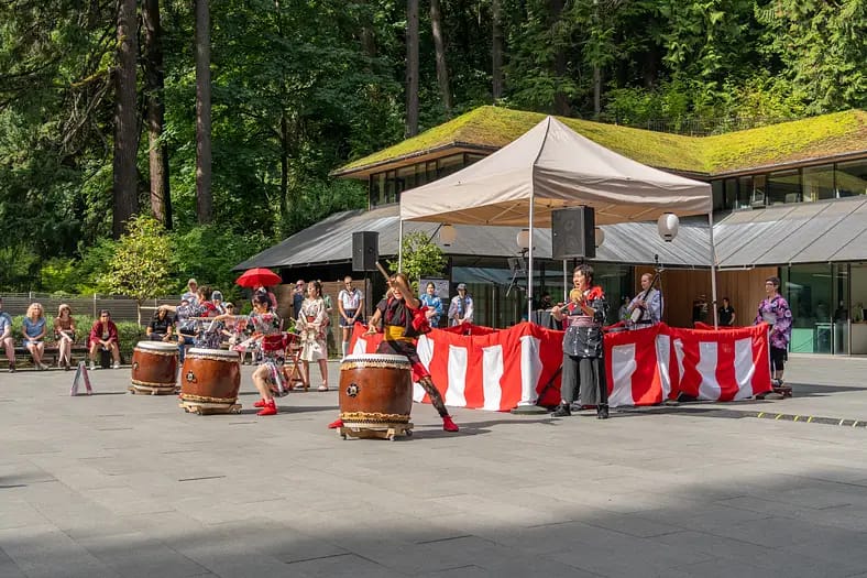 At Portland Japanese Garden, dances will be taught by Chris Dart and demonstrated by dancers from Oregon Buddhist Temple. Come to learn the dances, see people dressed in yukata, and to hear and feel the sound of taiko drums.