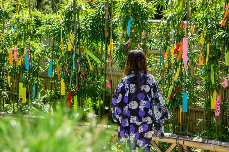 Tanabata, the Star Festival, is one of five seasonal festivals that has been celebrated in Japan since the eighth century. Each summer in Japan, people prepare for the festival by writing their wishes on narrow strips of paper called tanzaku and hanging them with other origami paper ornaments on bamboo branches displayed at the entrance to their homes and public places. Guests attending Portland Japanese Garden’s Tanabata celebration will be invited to the Yanai Family Classroom to write their own wishes on tanzaku. Volunteers will be present to assist guests with hanging their tanzaku on the bamboo in the Crumpacker Bamboo Allee, adding to the colorful display. The festival will also feature music from Takohachi and storytelling of the Tanabata story.