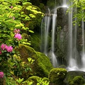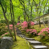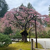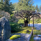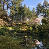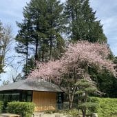 The cherry blossoms or sakura (the national flower of Japan) and camellias tend to bloom in Portland Japanese Garden early, but soon, start looking for pieris (also known as andromeda) in bloom near the Upper Pond in the Strolling Pond Garden and in the Natural Garden. Soon, we will start to see dogwoods, azaleas, and rhododendrons in bloom.