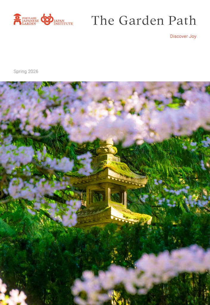 Every season, Portland Japanese Garden publishes The Garden Path—a look at what’s ahead, at stories of interest to our membership, and how your support benefits the Garden and our community. Members receive a printed version of the magazine mailed to their homes, and we keep a digital archive here for all to access and reference. Thank you so much for your interest, and enjoy browsing the magazine.